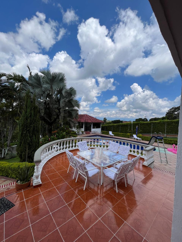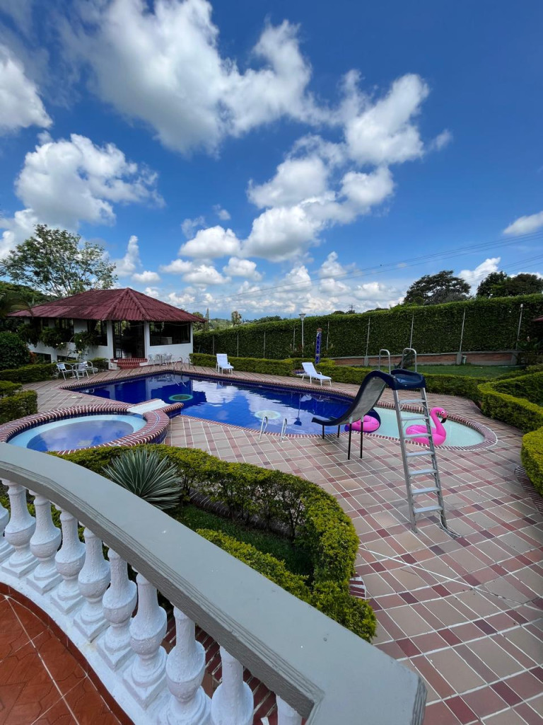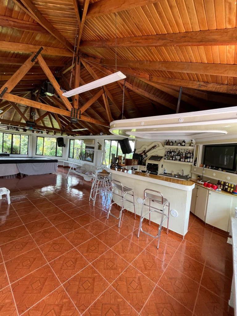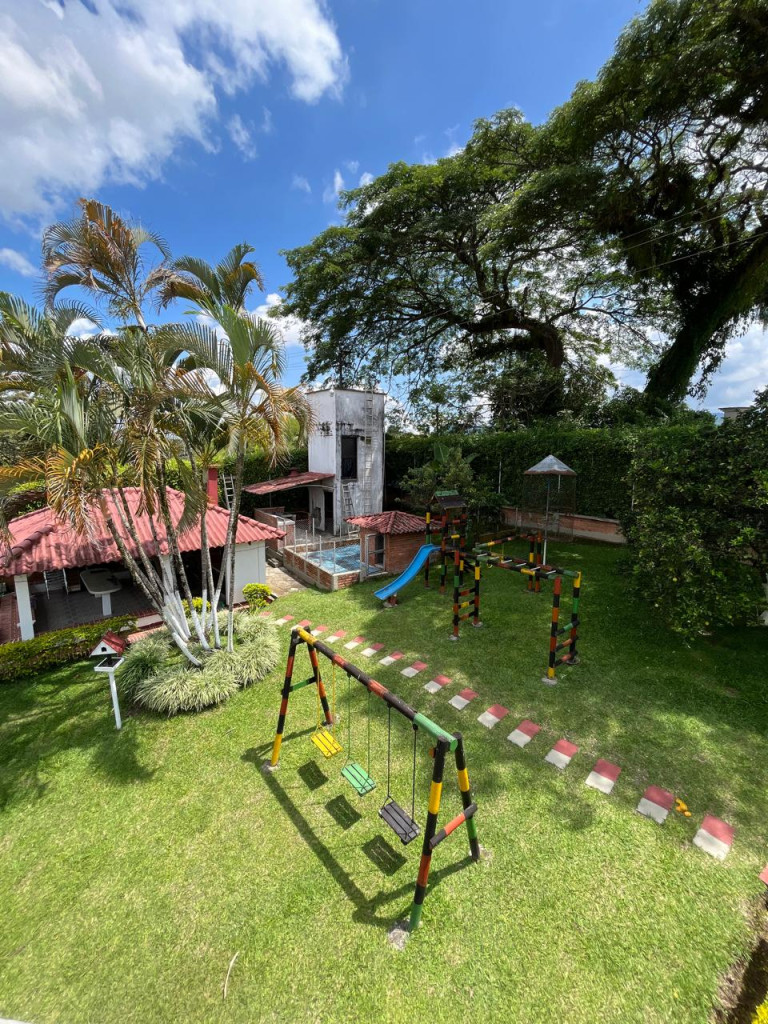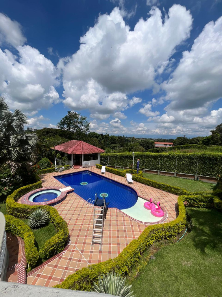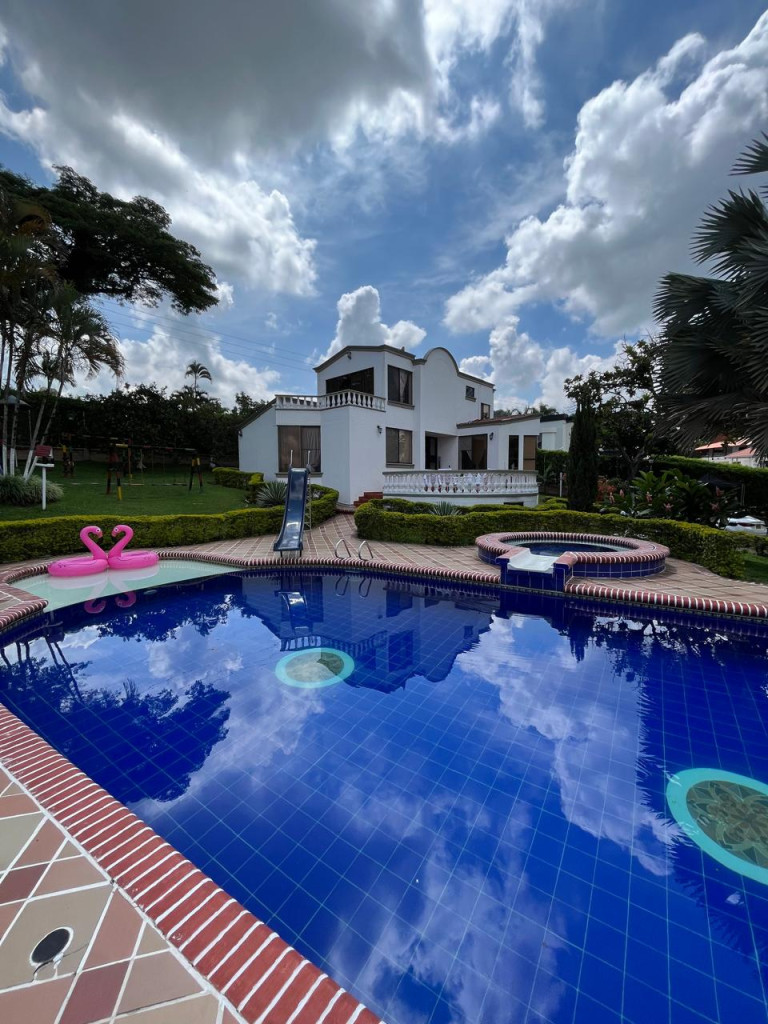 Rentar Inmobiliaria te ofrece en venta una espectacular casa campestre en la ciudad de Pereira, ubicada en la vereda Combia La Siria, con un lote de 4.749 m² y un área construida de 428 m², distribuida en dos pisos, con un valor de $1.600.000.000, negociable y con posibilidad de permuta. Esta hermosa propiedad cuenta con cocina integral, gas natural, calentador, aire acondicionado, seis habitaciones, seis baños, sala comedor, estudio, clósets, balcón, terraza, patio, jacuzzi, sauna y turco, además de pisos en baldosa y cerámica. Disfruta de amplias zonas verdes, jardín, zona BBQ, piscina, zonas infantiles, gimnasio, salón comunal, canchas deportivas y portería con vigilancia, todo dentro de un conjunto cerrado con parqueaderos para visitantes. Adicionalmente, la propiedad incluye discoteca, billar, barra, estadero para asados y casa para mayordomo con dos cuartos. Con acceso pavimentado y una ubicación privilegiada, está rodeada de supermercados, restaurantes, centros comerciales, colegios, universidades y excelentes vías de transporte público. ¡Una oportunidad única para vivir con lujo, tranquilidad y contacto con la naturaleza en el corazón de Risaralda! Contáctanos al 300 912 16 00 – 334 42 40 y síguenos en redes sociales @rentarinmobiliaria para descubrir más opciones pensadas para ti.
