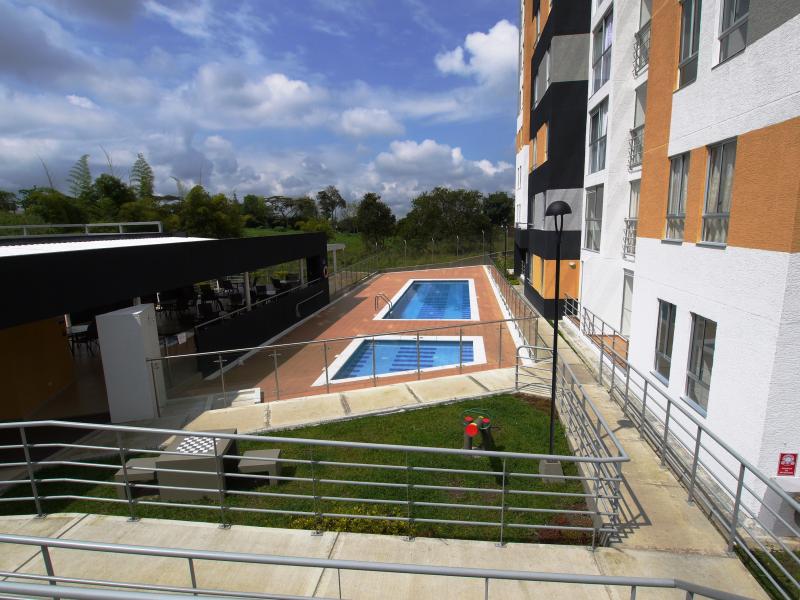 Rentar Inmobiliaria ofrece apartamento en venta en La Pradera, Dosquebradas, con 56 m2 construidos, 3 habitaciones cuenta con Persianas , todas las habitaciones con closet y la principal cuenta con Vestier. 1 baño, cocina integral, sala comedor, zona ropas y piso en porcelanato. En conjunto cerrado el cual ofrece, parqueadero a visitantes, portería, vigilancia, citófono, jardín, zona infantil, zonas verdes, zona BBQ, ascensor, piscina, canchas deportivas, gimnasio y planta eléctrica. (Administración incluida)